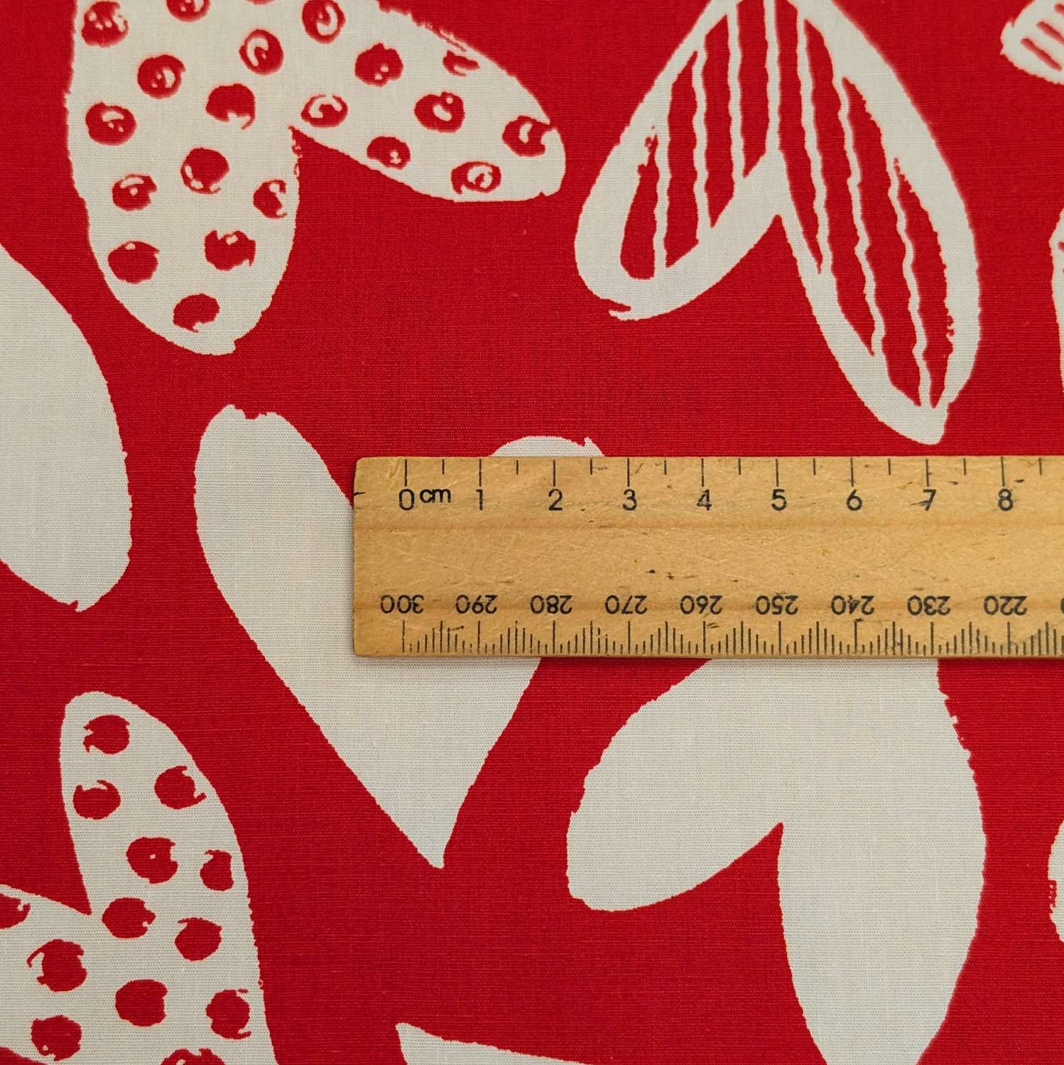 Close up flat lay of 100% Cotton Poplin, Red Heart for sale at Minerva's Bower, ruler included for scale