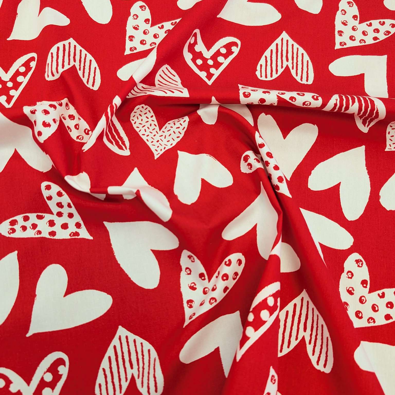 Medium weight pre shrunk cotton poplin. Red base with white heart design.