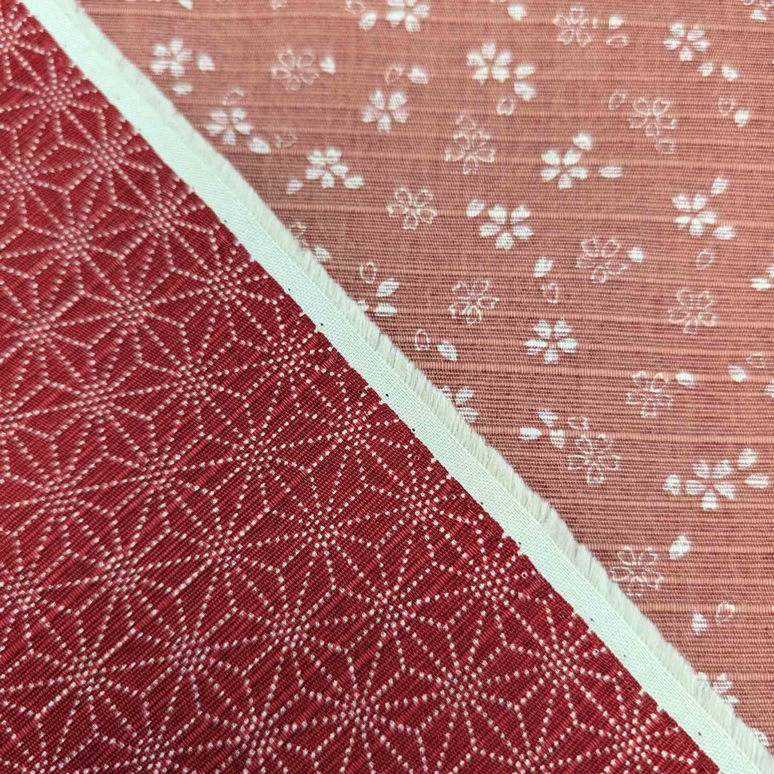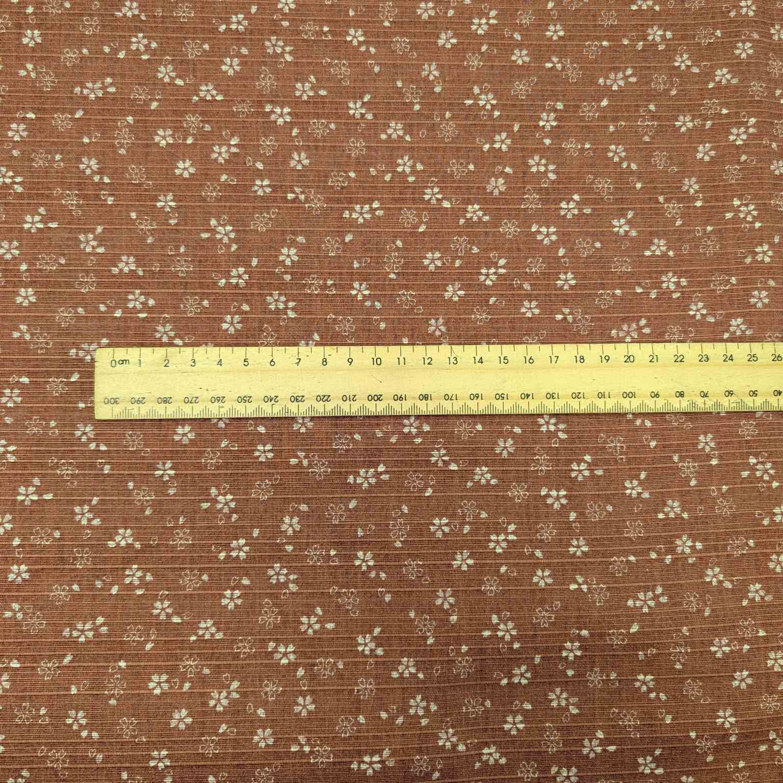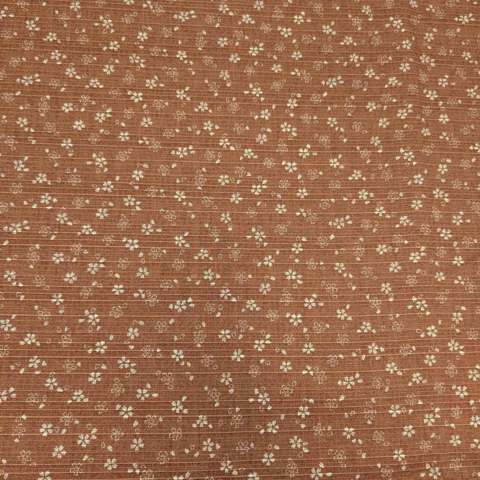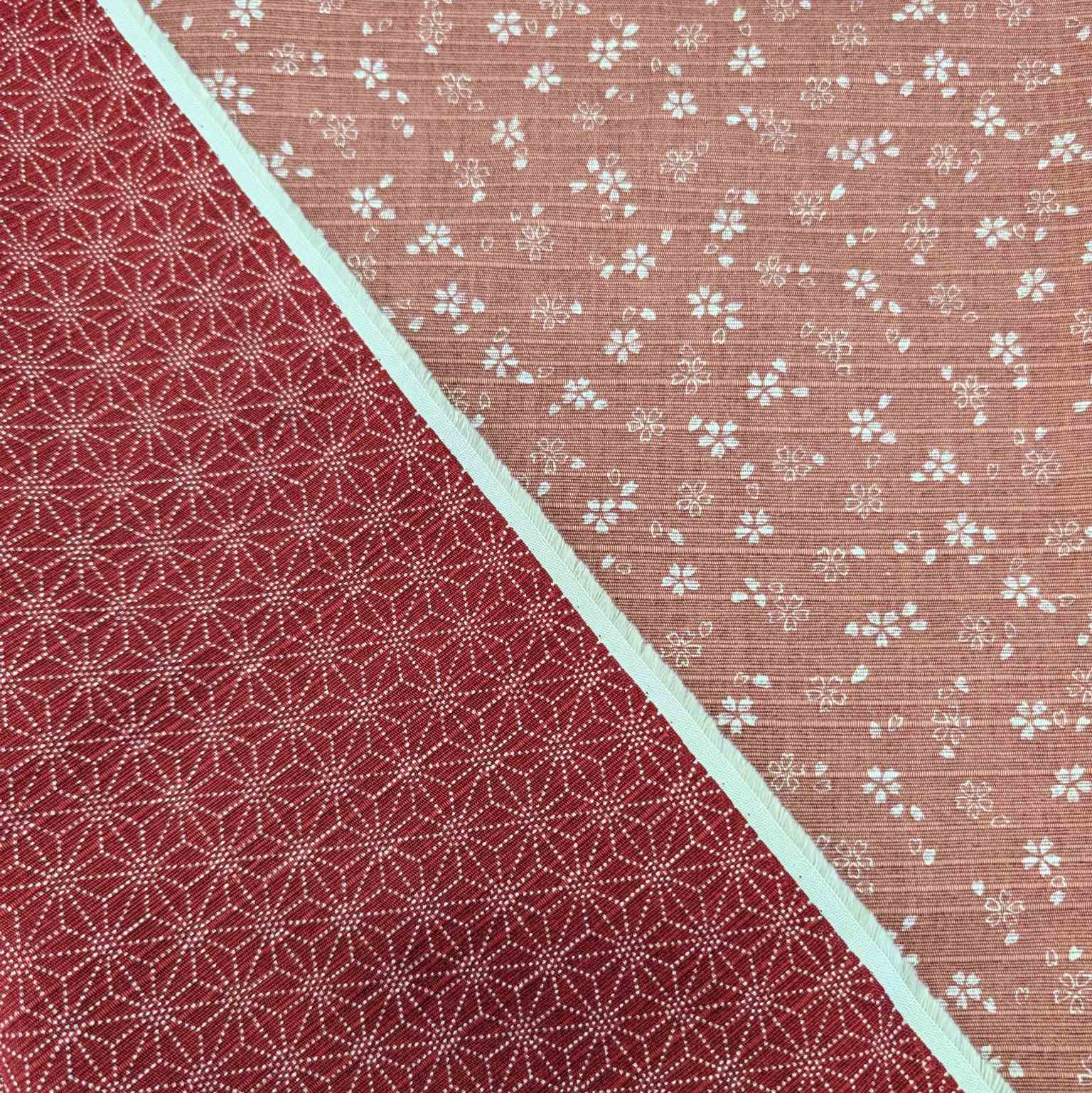 Medium weight printed double sided Japanese Shantung cotton. Washed Burgundy base with small scattered floral print. Reverse has traditional star print and cloth has traditional slubby Shantung texture and sheen