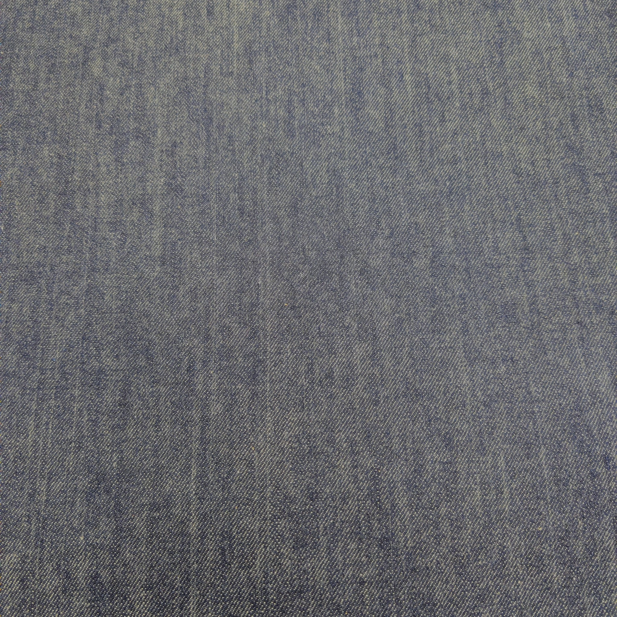 Rigid rope dyed cotton medium to heavy weight selvedge denim with no elastane in Indigo. Warp and Weft threads give a mottled effect. Selvedge is a fine stripe of white and pink.