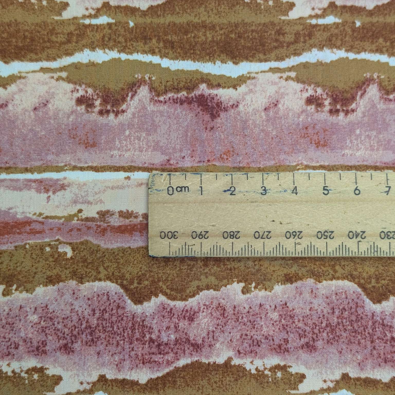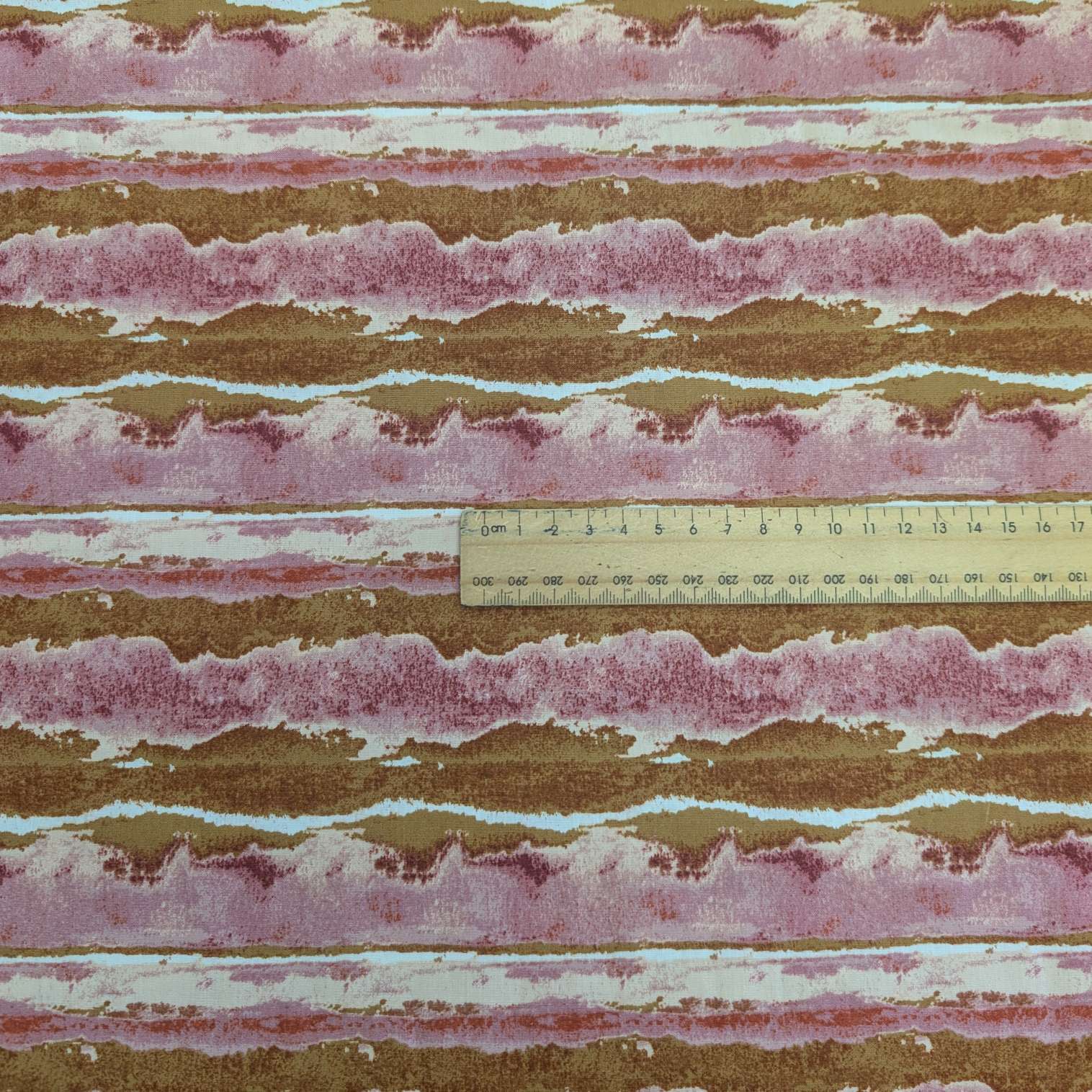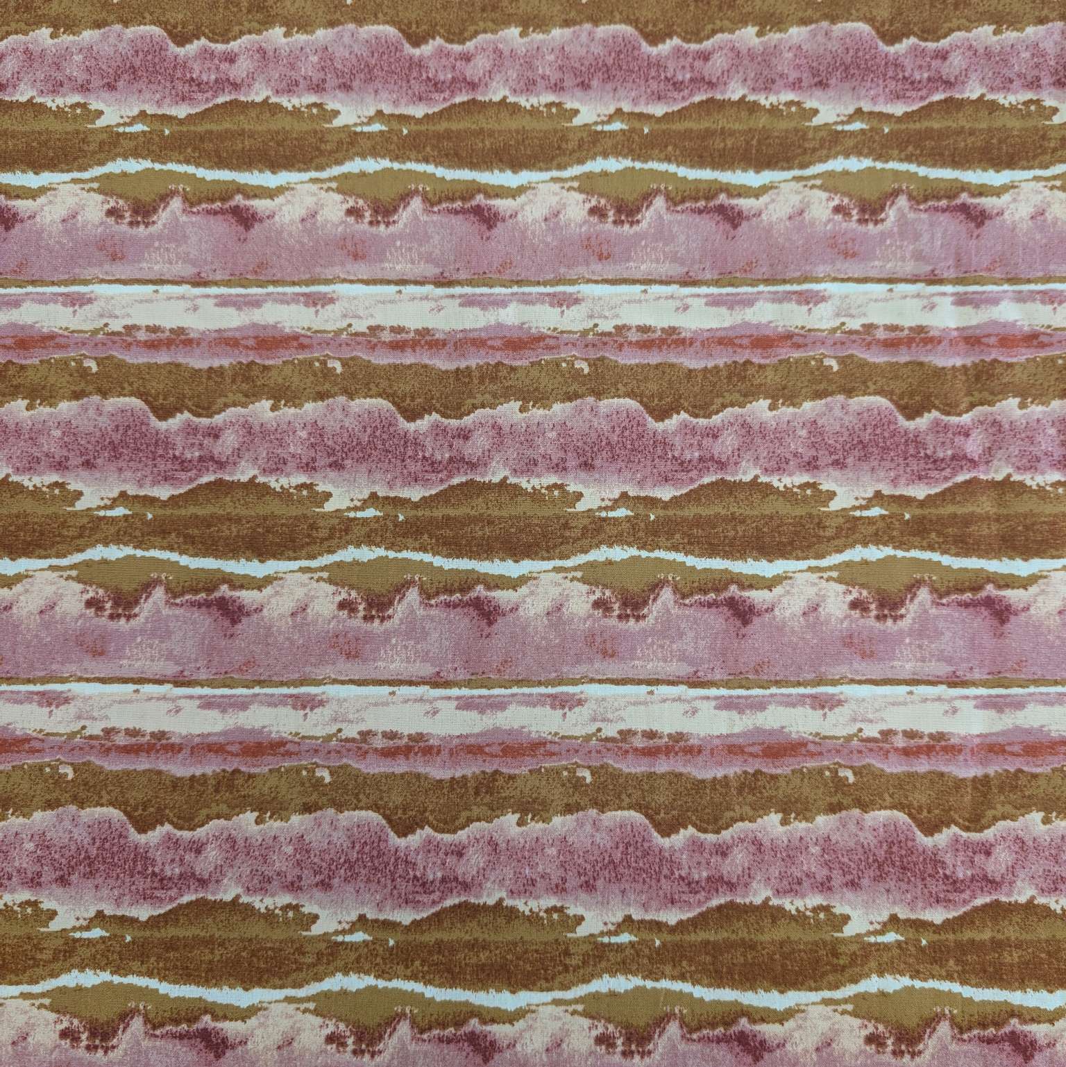 Art Gallery premium mid weight cotton with beautiful drape . Horizontal irregular striped design in muted burgundy and copper. Oeko Tex certified.