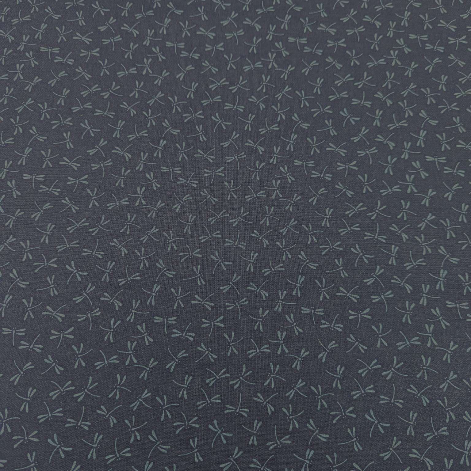 Japanese 100% Cotton, Tonbo, indigo base with a small dragonfly design, available now at Minerva's Bower