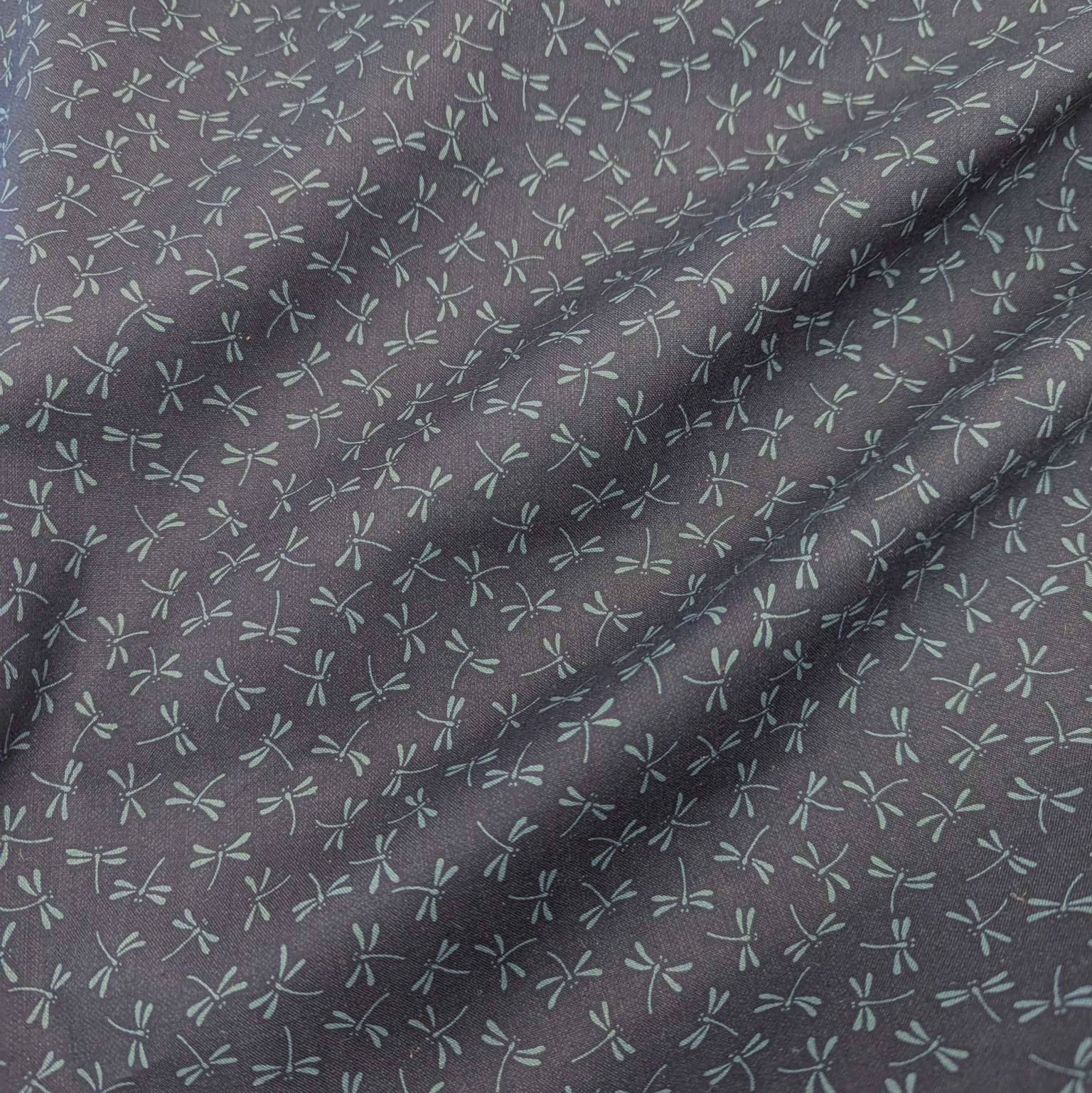 Drape Japanese 100% Cotton, Tonbo, indigo base with a small dragonfly design, available now at Minerva's Bower