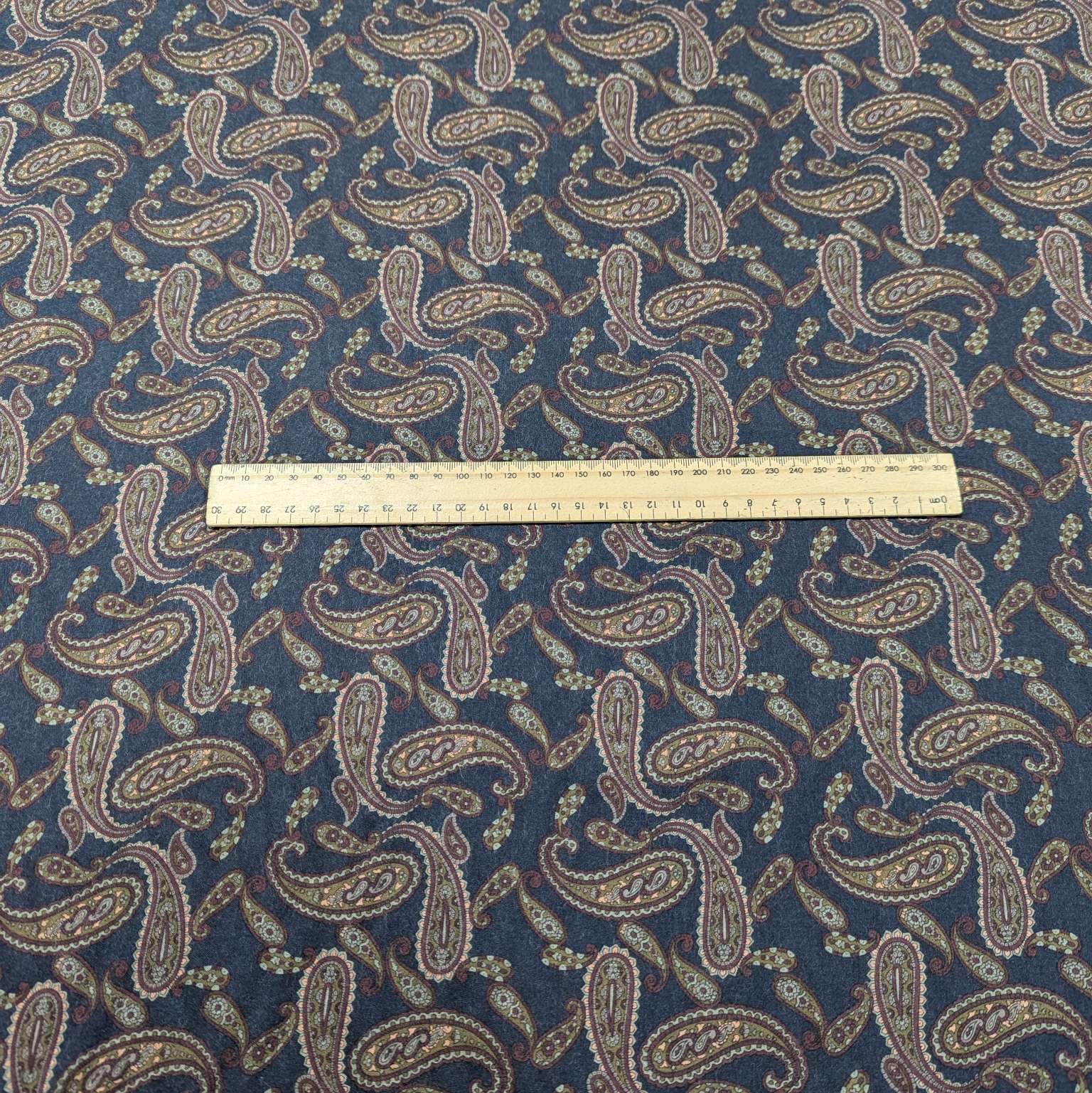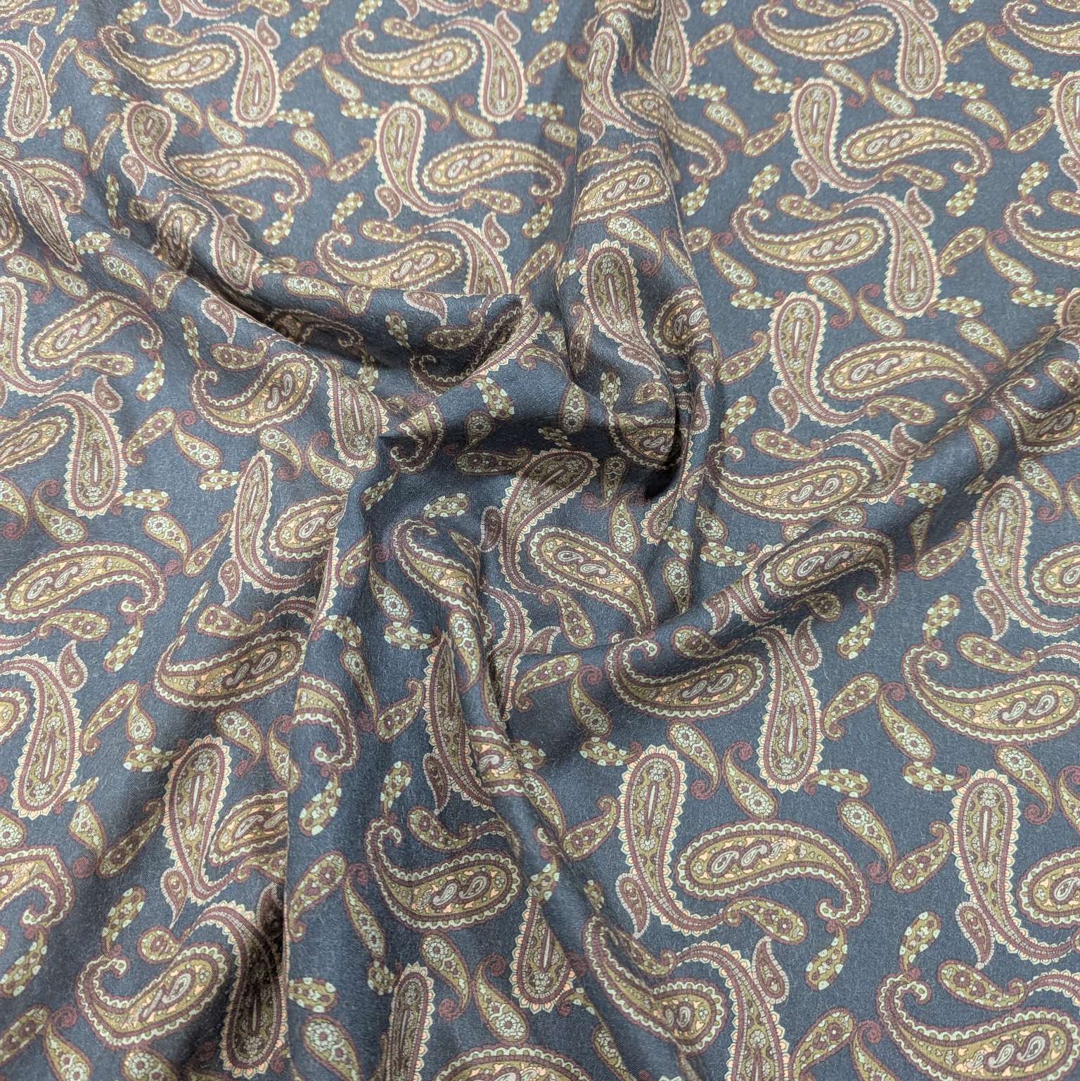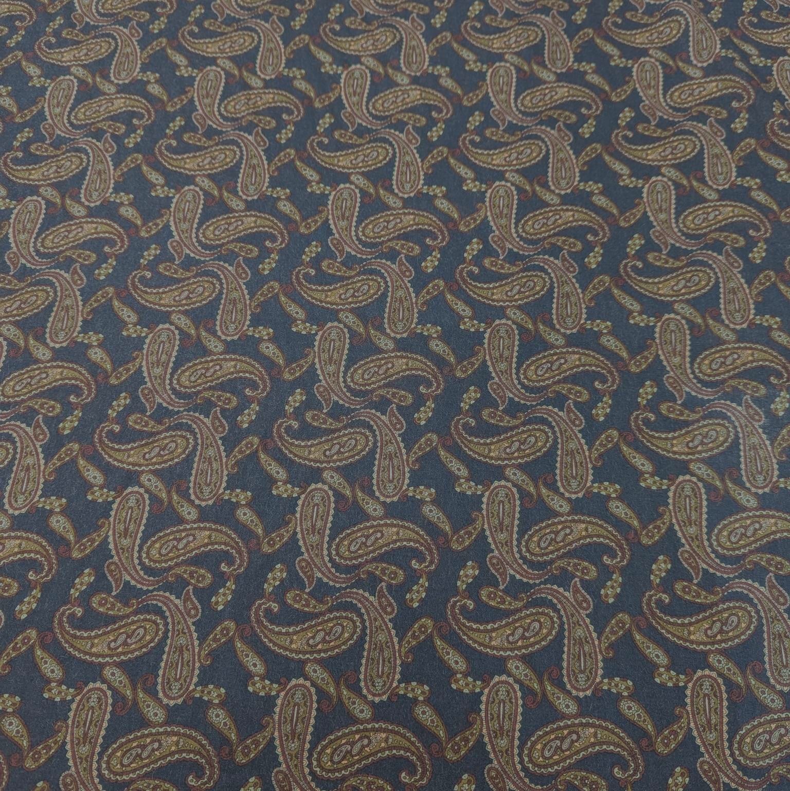 Soft and drapey lyocell with a classic Paisley print on a French Navy base. Lyocell is a man made natural fibre often referred to as tencel. Has moisture and odour wicking properties. Lovely lighter weight with lots of drape.