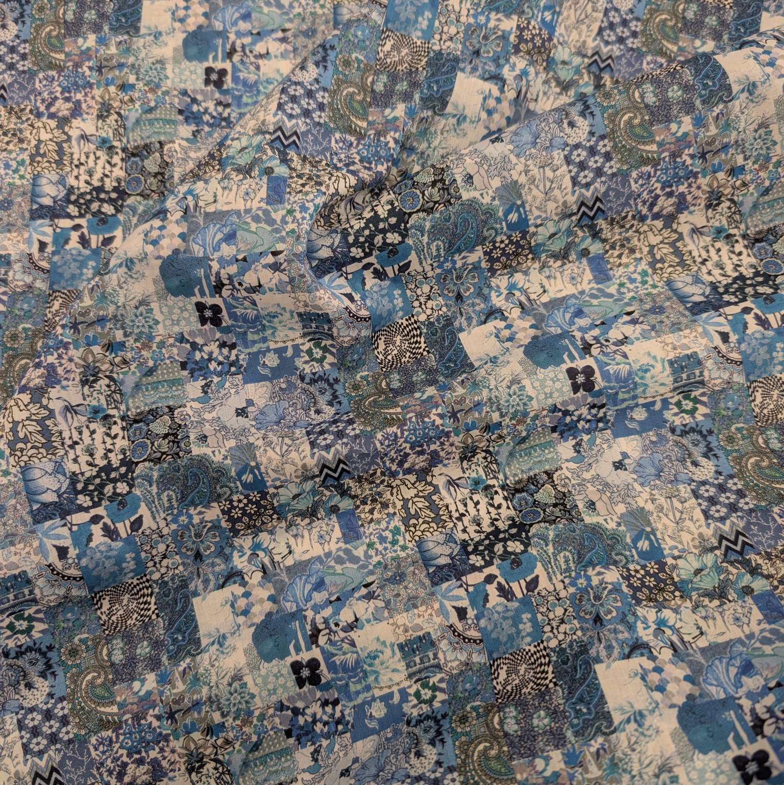 Lovely lightweight 100% cotton lawn in signature Liberty style. Art release Liberty, This commemorative pattern features 57 designs, each representing a unique moment in Liberty’s century-and-a-half-old archive, from traditional paisleys to modern geometrics and signature florals. Archive Patchwork is part of The Stage act of Retold, a look through our visually enthralling Liberty flagship which, with its atriums and galleries, forms the perfect stage for this performance to unfold – set with an eclectic collection of objets d’art from across the globe. Colourway B is tonal blues.