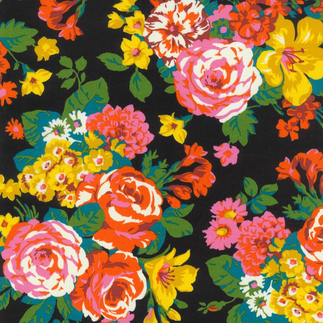 Originally hand-painted in 1990 and printed for Liberty's seasonal collections in 1992 and 1995, Flower Crown has been reimagined for the 21st century. Inspired by the legendary artist, Frida Kahlo, this design celebrates the vibrant floral crowns she often wore in her self-portraits. These remarkable bouquets showcase roses, daisies, geraniums and lilies among many other flowers.
