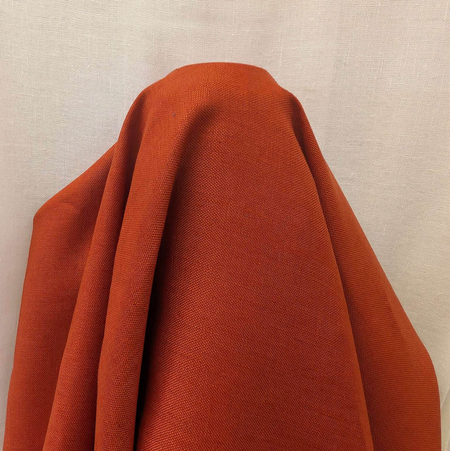 Medium to Heavy weight 100% linen inperfect orange copper brown. Fabric has some body and a heavier drape.