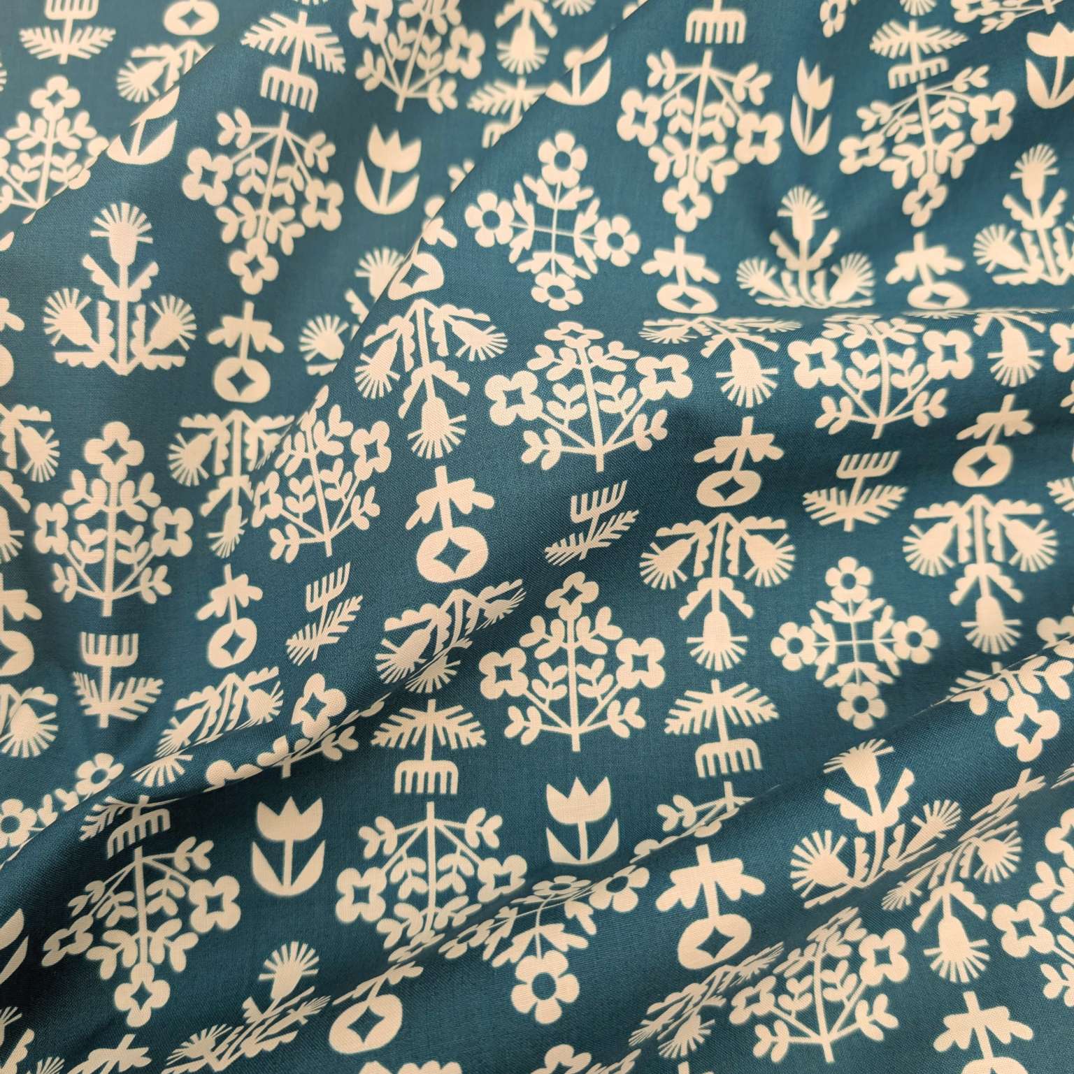 Designed by Rashida Coleman-Hale for Ruby Star Society. Lovely lightweight cotton in teal with white floral design